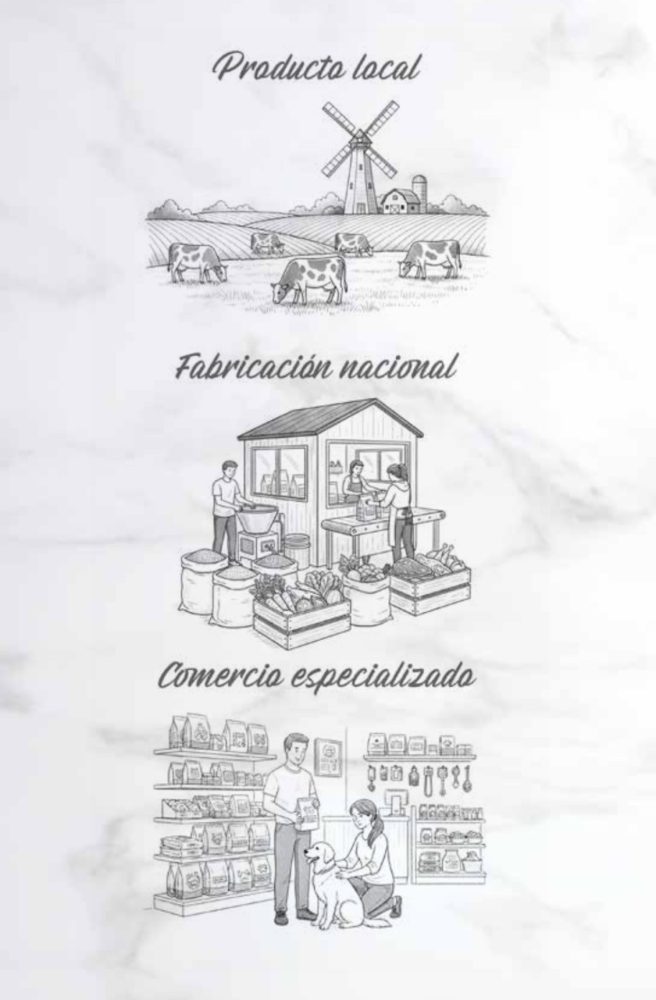 Proteínas animales premium: ternera Angus deshidratada, salmón y pollo para apoyar músculo y vitalidad.